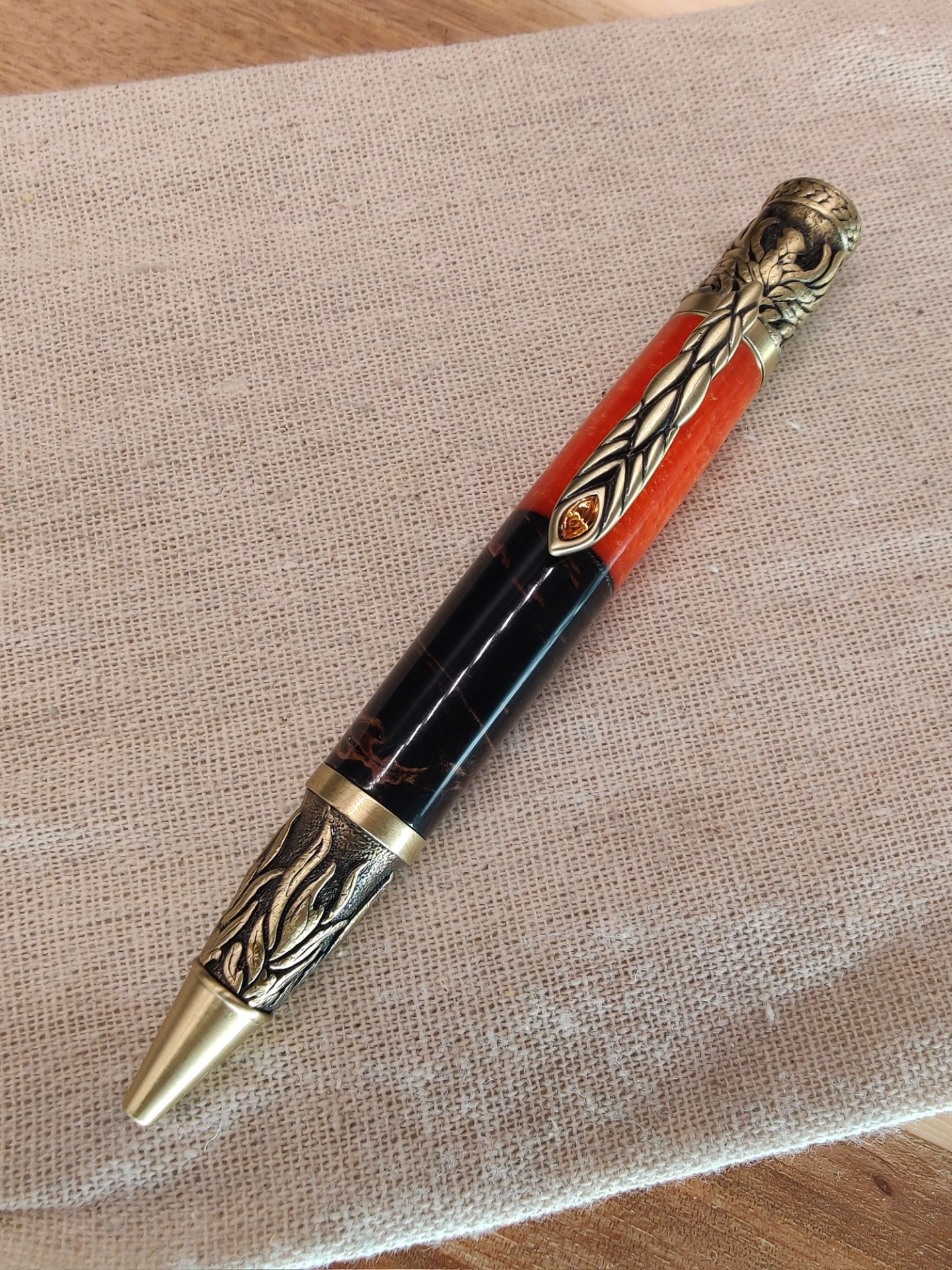 Stylo Bille "Phoenix Ignis" Loupe d’Érable noire et Résine Feu, mécanisme finition Laiton Antique Épuisé 60,00 € 0,00 €