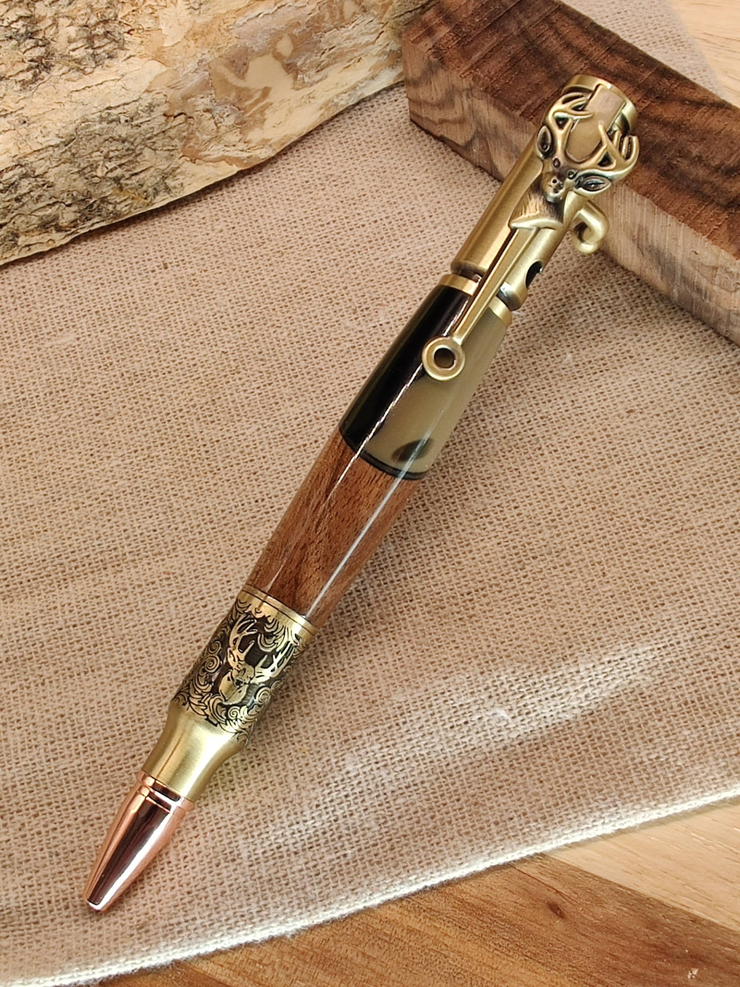 Stylo Bille "L'Esprit du Cerf" en Bois de Noyer et Résine style Camouflage Mécanisme Finition Laiton 55,00 € 0,00 €
