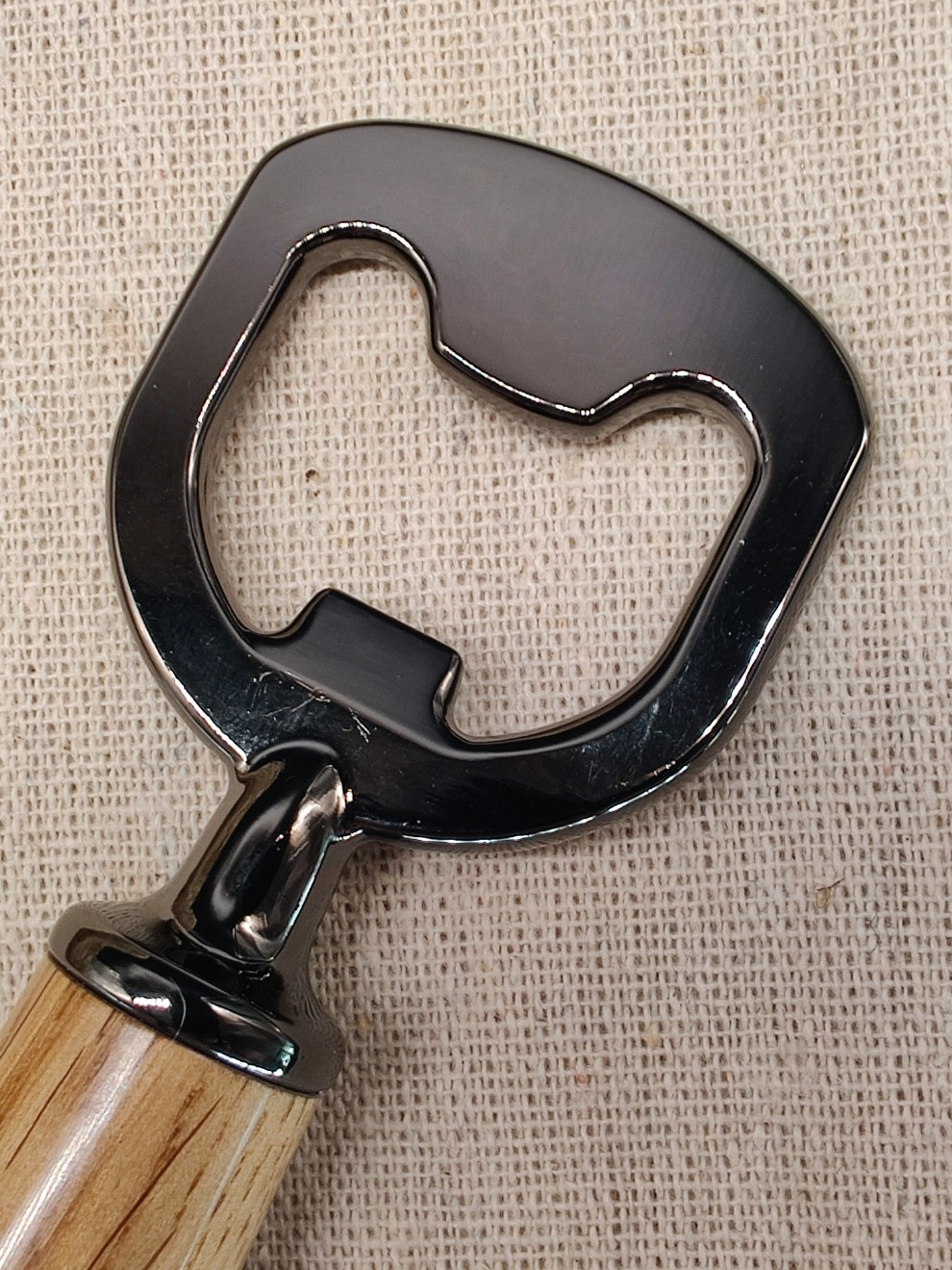 Le Décapsuleur assorti : Manche en chêne tourné, ergonomique et robuste, monté sur un mécanisme en acier finition gunmetal de qualité professionnelle.
