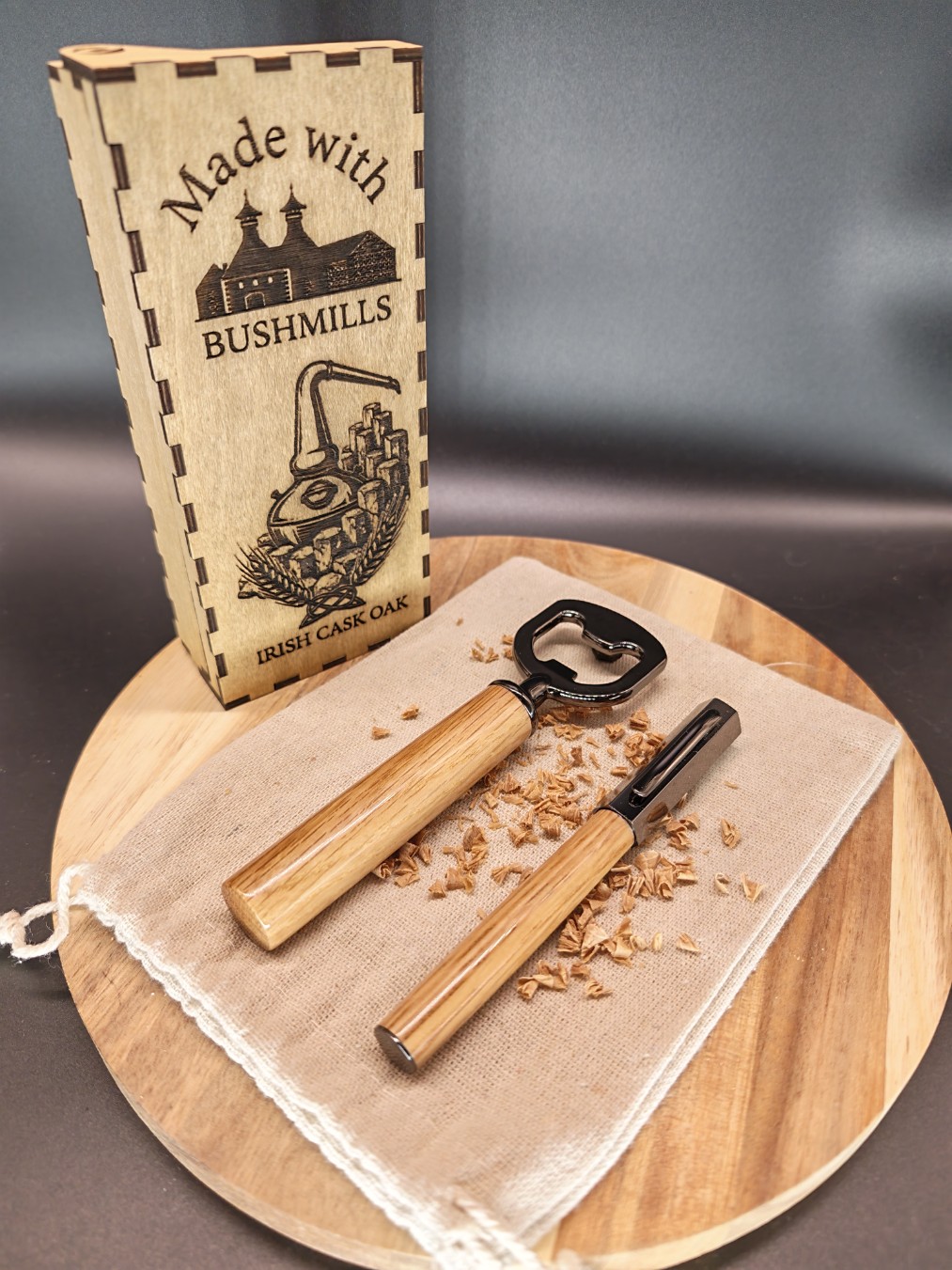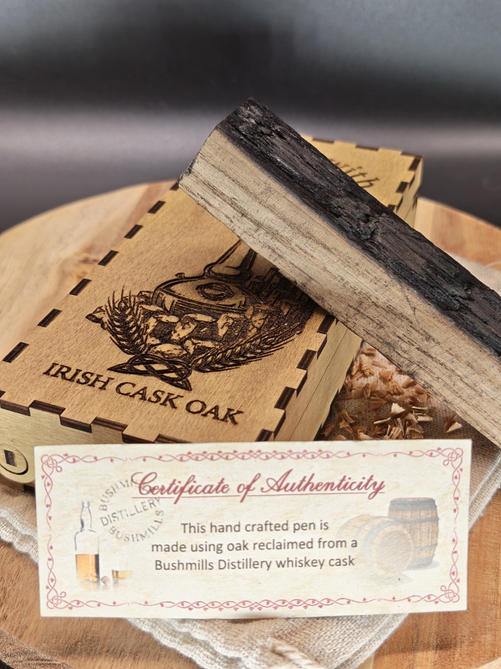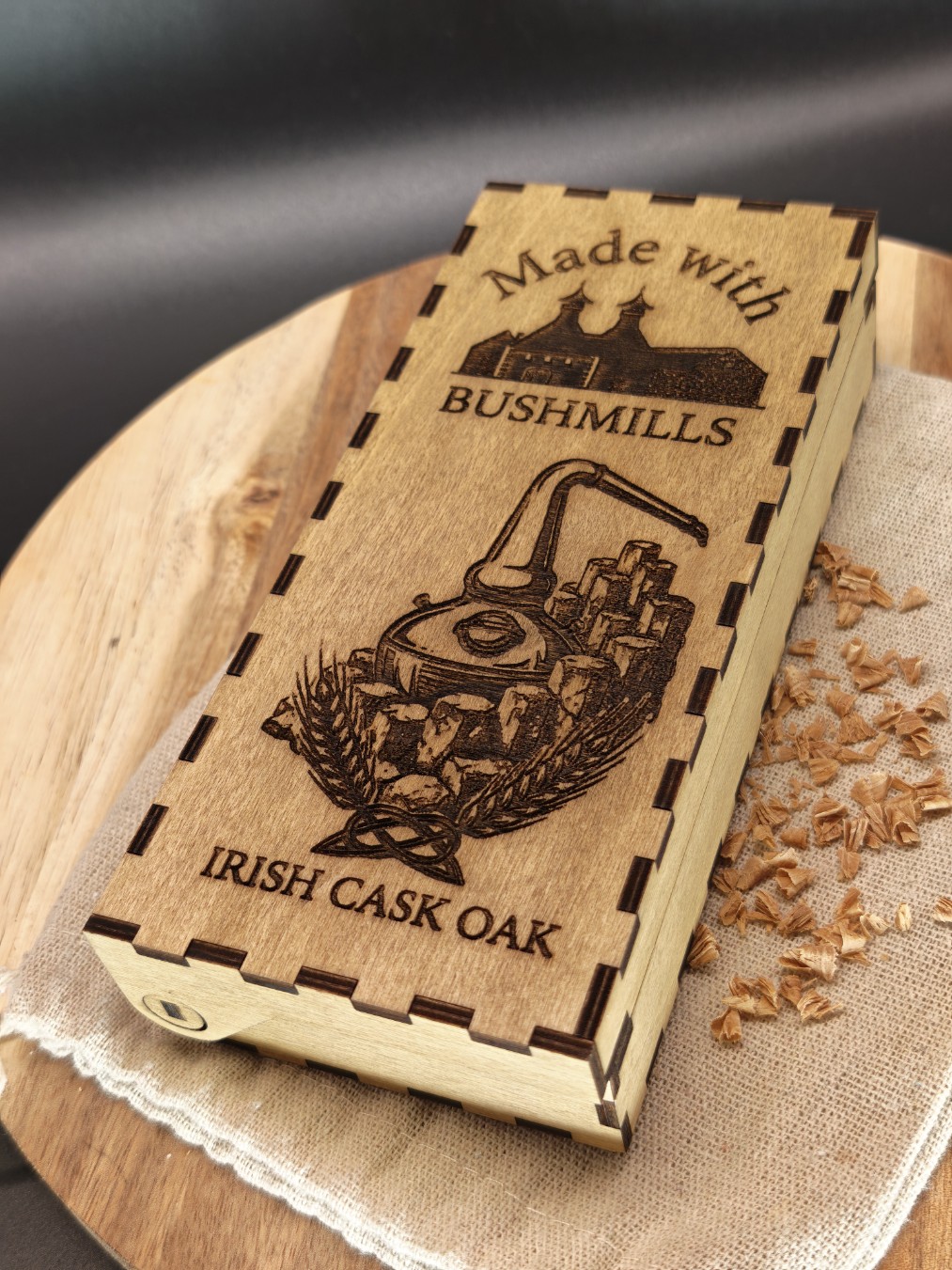 Matériau : Chêne de fût de whiskey authentique (origine Bushmills).
