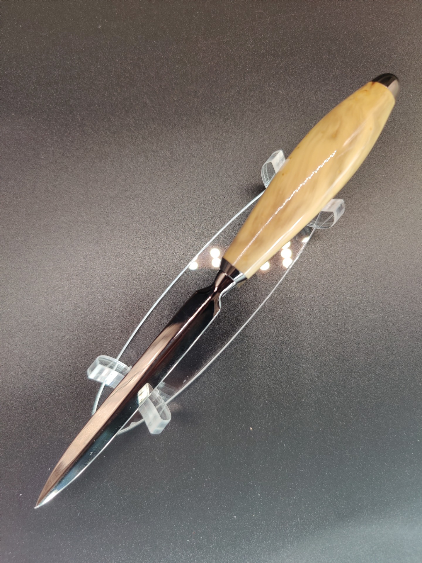 Le bois de cet ouvre lettre provient d'un lot exceptionnel de buis français (Buxux sempervirens) récolté dans les Pyrénées. Les arbres dont sont issues ces pièces avaient entre 100 et 150 ans et elles ont séché pendant près de 20 ans !