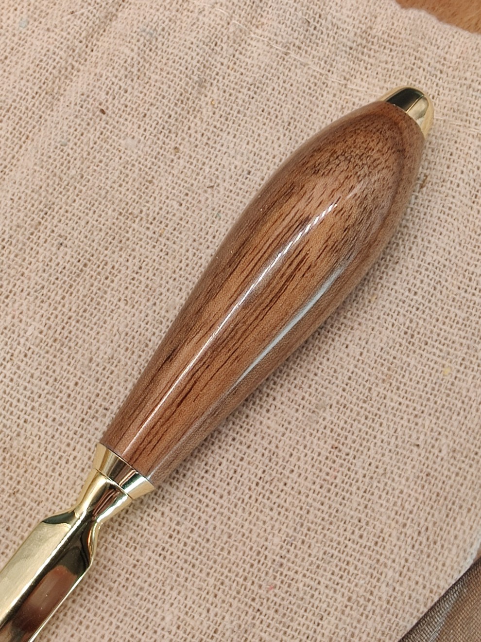 Le bois de noyer est associé ici à une monture dorée, il dégage un luxe discret, celui des belles choses qui n'ont pas besoin de crier pour se faire remarquer.