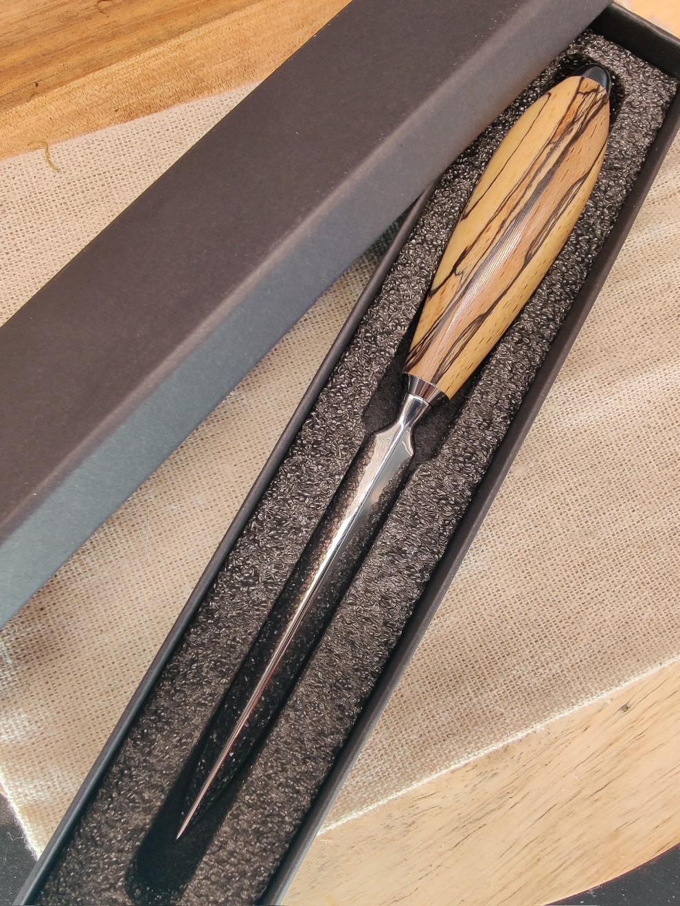 Habituellement fragile, ce bois d'exception a ici été stabilisé par injection de résine.